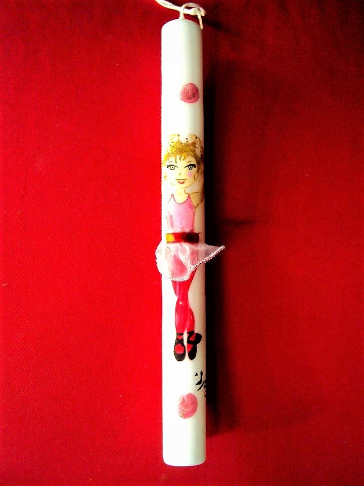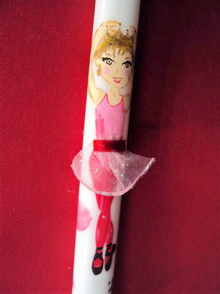 Έβαλε τη φουστίτσα της και ξεκίνησε τον χορό. Μια λαμπάδα για όσους αγαπούν το μπαλέτο και τις μπαλαρίνες. Συνοδεύεται από ξύλινο κουτί ζωγραφισμένο κι αυτό στο χέρι.