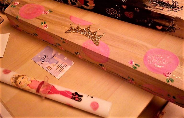 Hand painted easter candle. Ballerina in a wooden hand painted box.