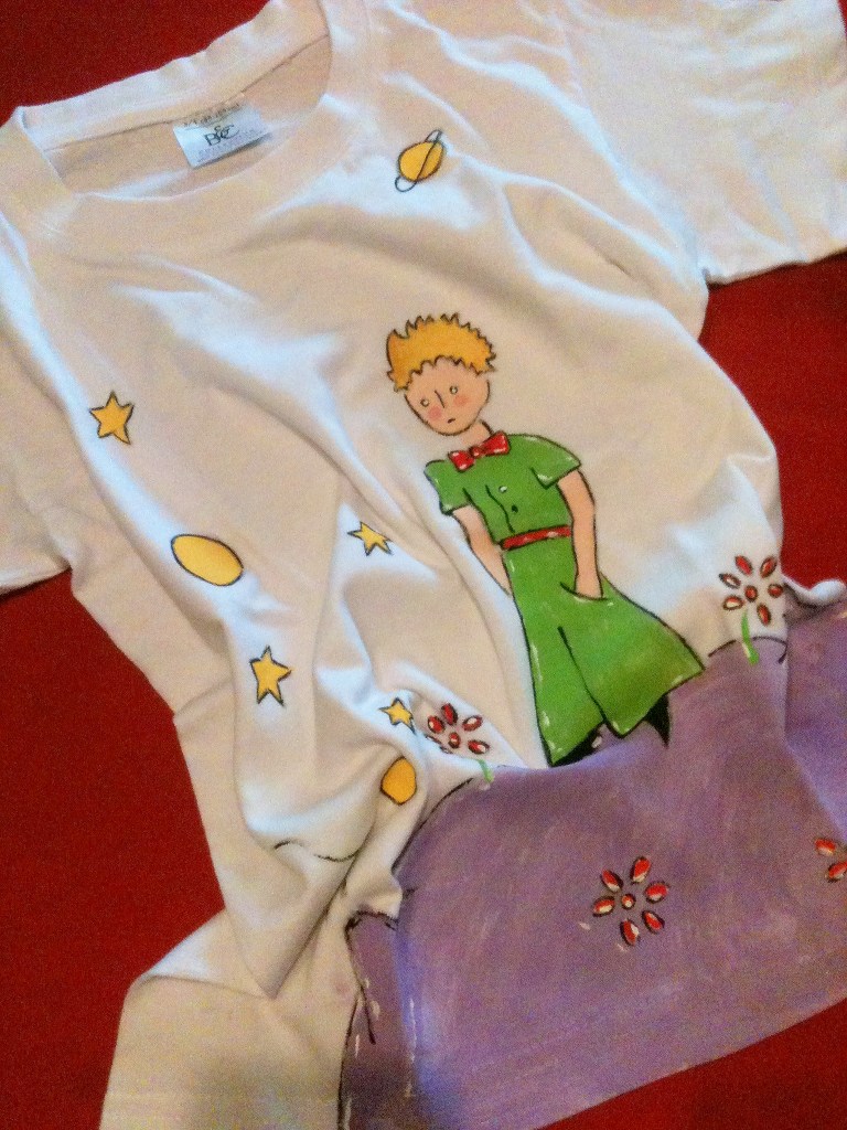 Βαμβακερό T-shirt ζωγραφισμένο στο χέρι με ανεξίτηλα, ειδικά για ύφασμα, χρώματα.