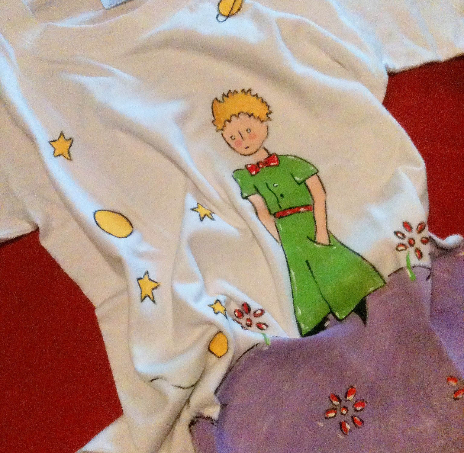 Βαμβακερό T-shirt ζωγραφισμένο στο χέρι με ανεξίτηλα, ειδικά για ύφασμα, χρώματα.