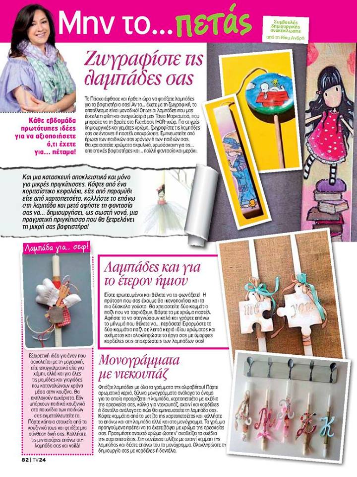 Καλλιτέχνης και η ίδια, η Βίκυ Ανδρή είναι expert στο πώς μπορείς να αξιοποιήσει κάθε αντικείμενο και να του δώσεις νέα ζωή! Η φιλία της είναι πολύτιμη για μένα. Την ευχαριστώ.