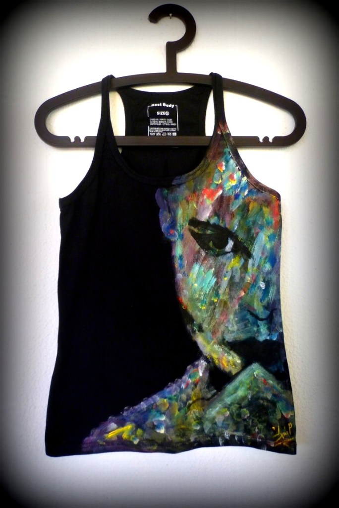 Μακό αμάνικο μπλουζάκι ζωγραφισμένο με ειδικά χρώματα για ρούχα. Πλένεται στο πλυντήριο.