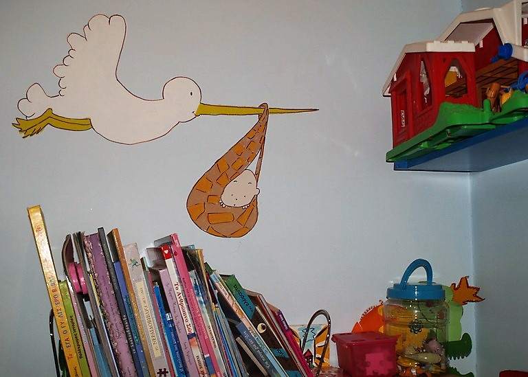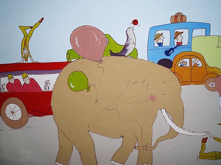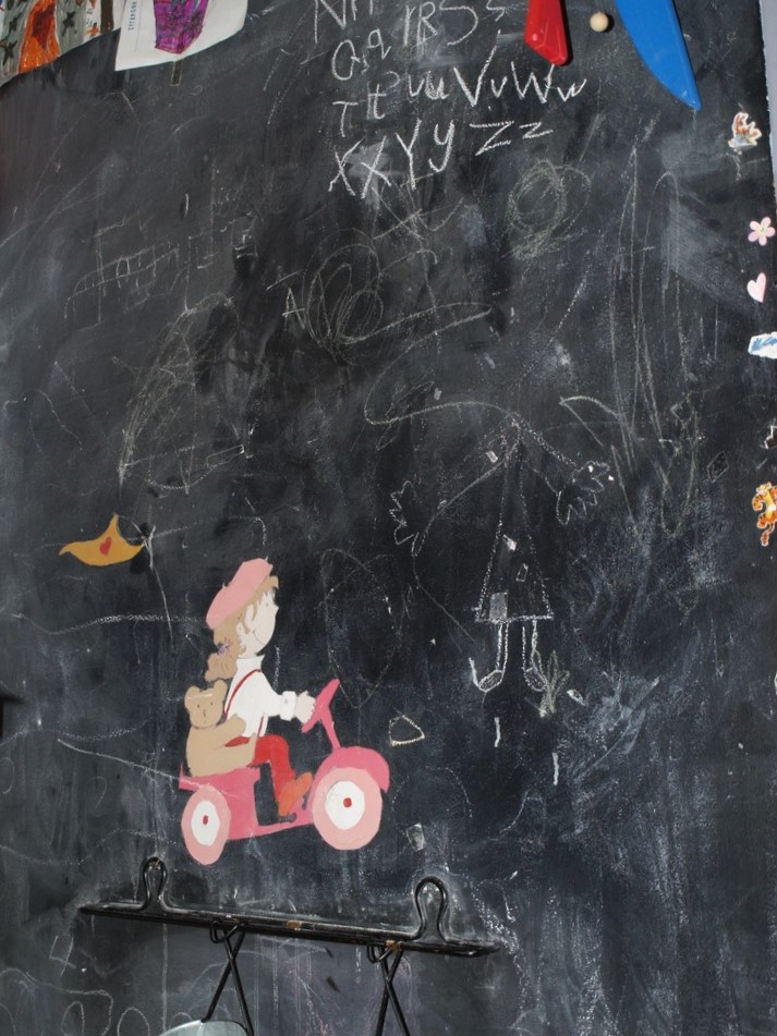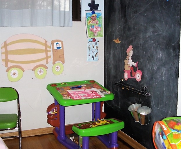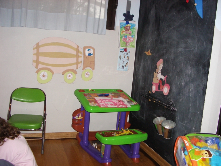 Το play room της Μαργαρίτας και του Κωνσταντίνου ζωντάνεψε με την πολύχρωμη παρέλαση του τσίρκου! Η φαντασία οργιάζει και η χαρούμενη ατμόσφαιρα εμπνέει. Από την άλλη πλευρά, ένας μαυροπίνακας επιτρέπει στα ίδια τα παιδιά να δημιουργήσουν ελεύθερα.