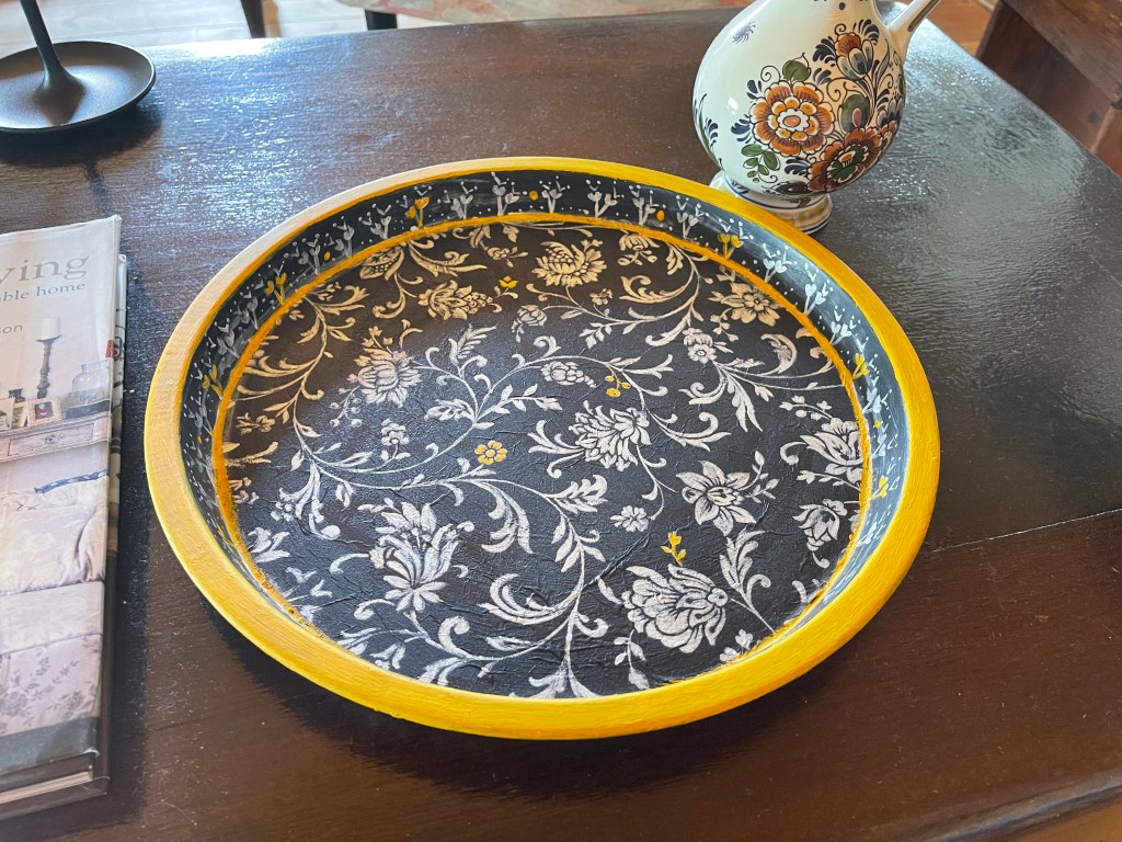 Μια φορά κι έναν καιρό ήταν ένας διαφημιστικός δίσκος σερβιρίσματος με λογότυπο γνωστής εταιρείας καφέ. Το ντεκουπάζ συνεργάστηκε με τη ζωγραφική και μαζί χάρισαν σε αυτό το δίσκο μία νέα ζωή!